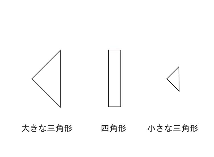 図形を「大きな三角形」「四角形」「小さな三角形」に分けて考えていきます。
